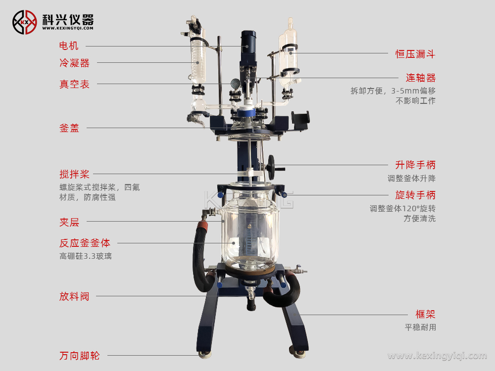 升降雙層玻璃反應(yīng)釜通過雙層反應(yīng)釜夾層,注入恒溫的(高溫或低溫)熱溶媒體或冷卻媒體,對反應(yīng)釜內(nèi)的物料進行恒溫加熱或制冷,并且可以提供攪拌。物料在反應(yīng)釜內(nèi)進行反應(yīng),并能控制反應(yīng)溶液的蒸發(fā)與回流,反應(yīng)完畢,物料可從釜底的出料口放出,操作極為方便。是現(xiàn)代化學(xué)小樣,中樣實驗、生物制藥及新材料合成的理想設(shè)備。
